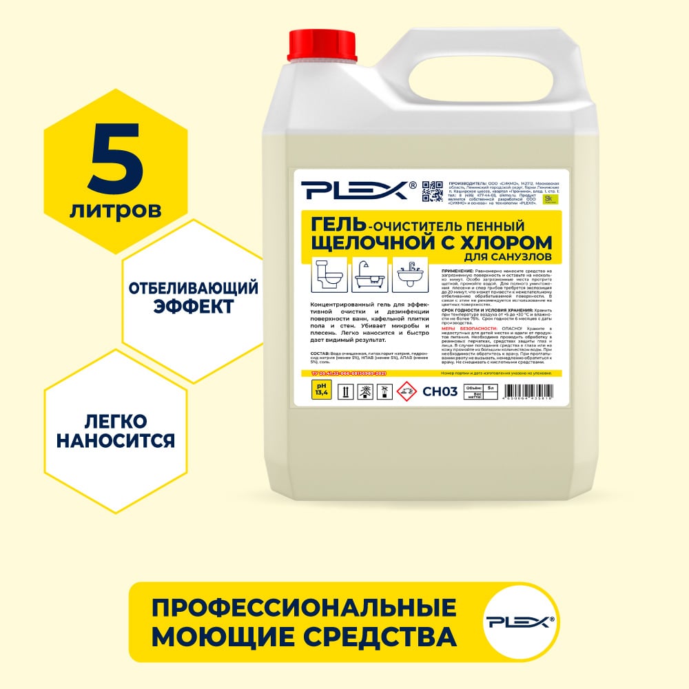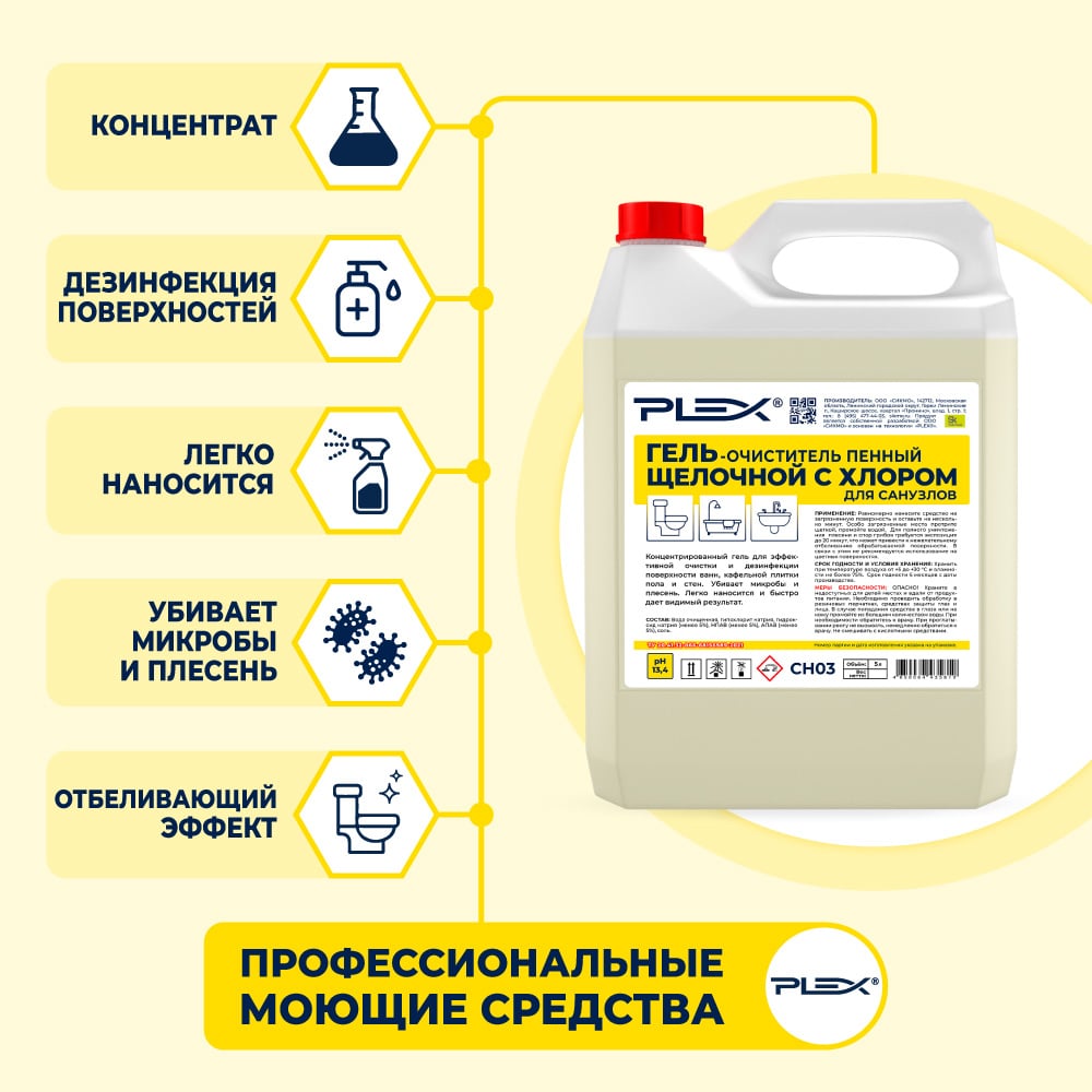 Щелочной пенный гель для санузлов PLEX УТ000005643