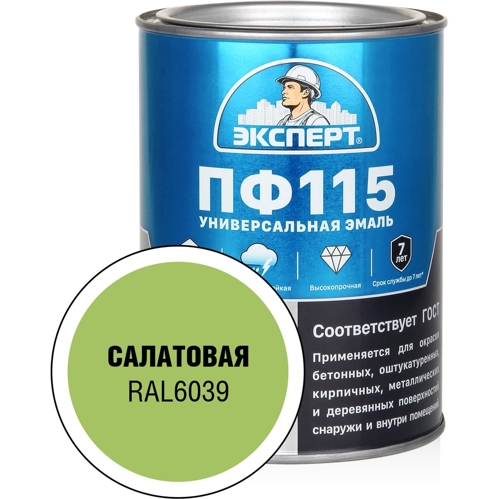 Эмаль ЭКСПЕРТ ПФ-115 глянцевая салатовая RAL 6039 0,8 кг 34101