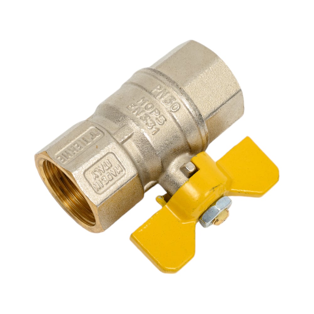 Шаровой кран для газа Tiemme Tornado ВВ, 1", желтая бабочка 2390010