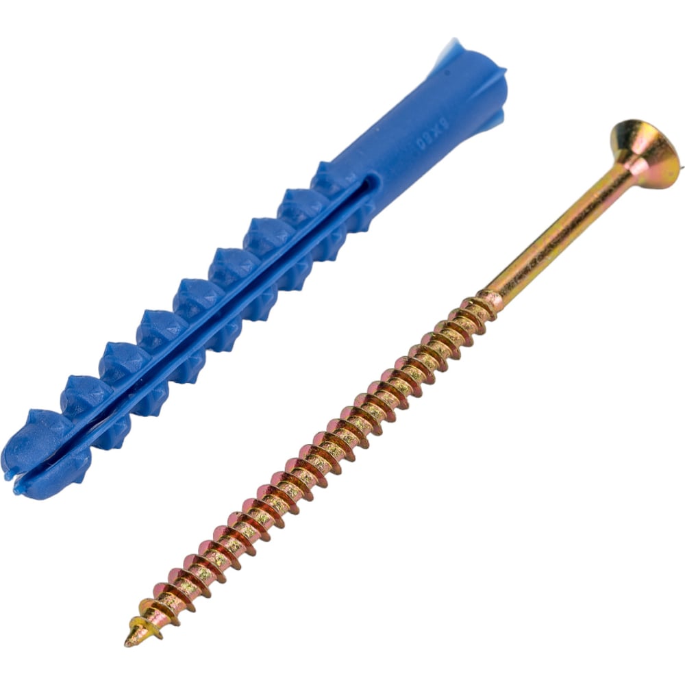 Набор для крепления ВИРТУОЗ дюбель 8х80 К, шуруп 5х90 потайная головка, желтый цинк, 8 шт. 00255