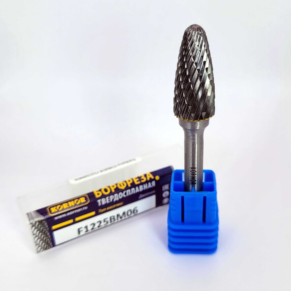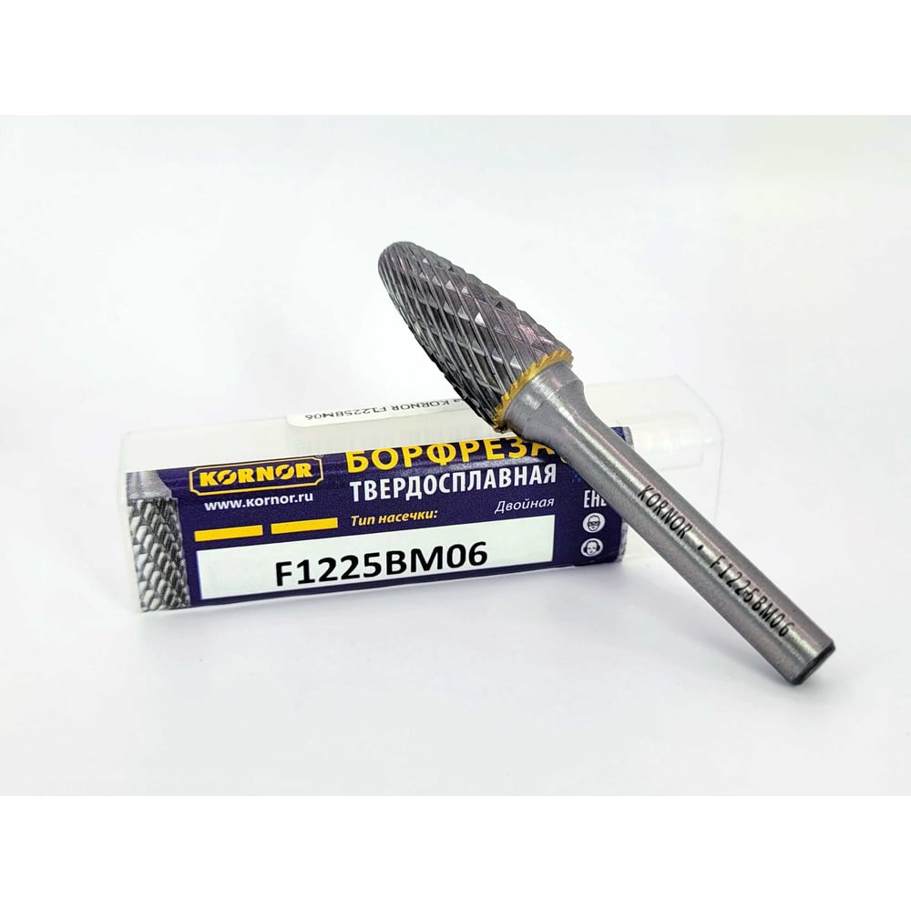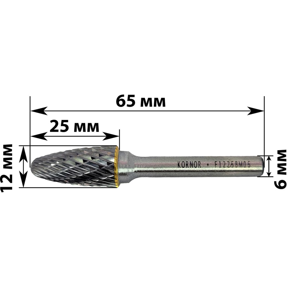 Борфреза гиперболическая со сферическим торцом (тип F; 12х25 мм; хвостовик 6 мм) KORNOR 362122506
