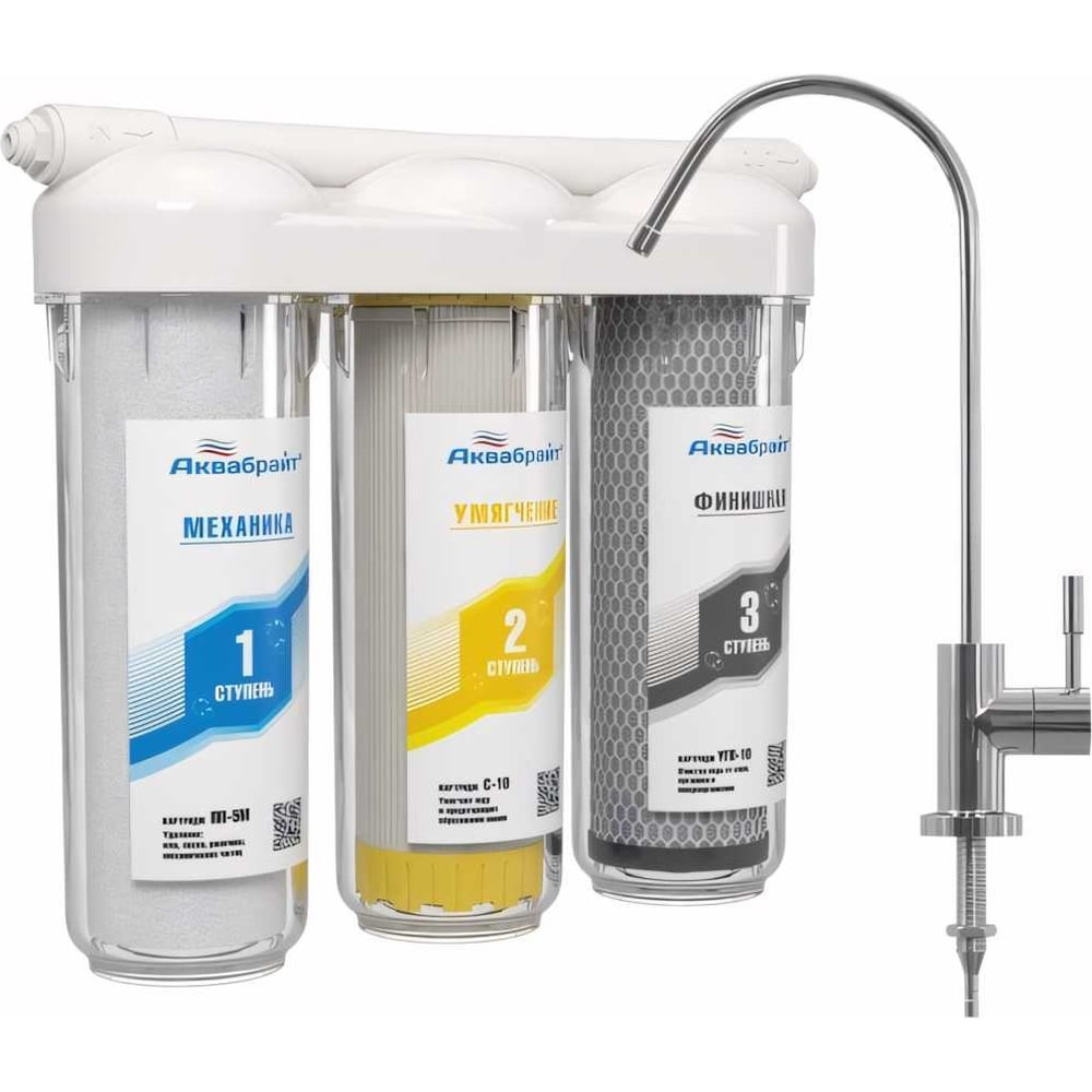 Трехступенчатый фильтр под мойку Аквабрайт АБФ-ТРИА-УМЯГЧЕНИЕ 33702