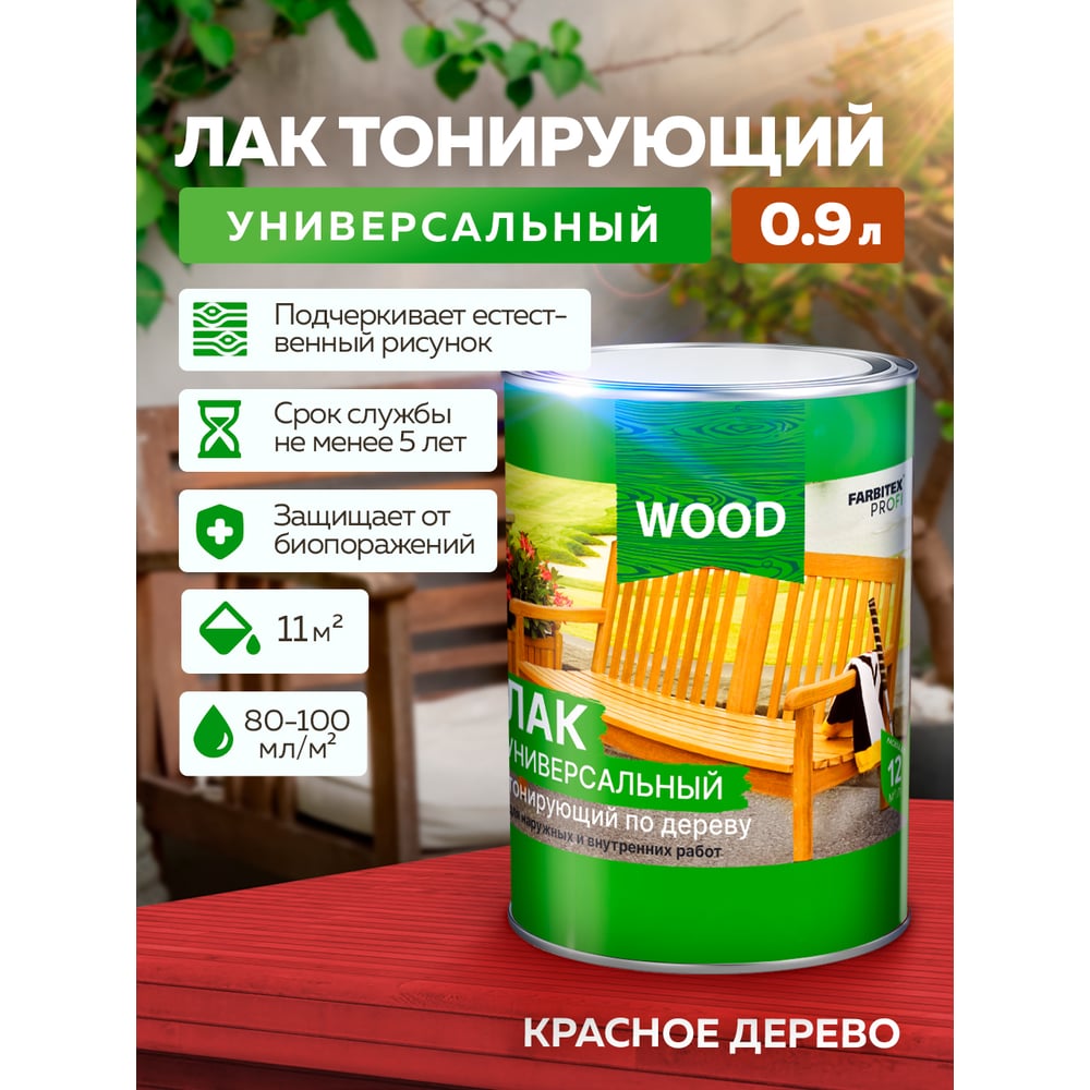 Универсальный лак FARBITEX (тонирующий; по дереву; красное дерево; 0.9 л) 4300009386