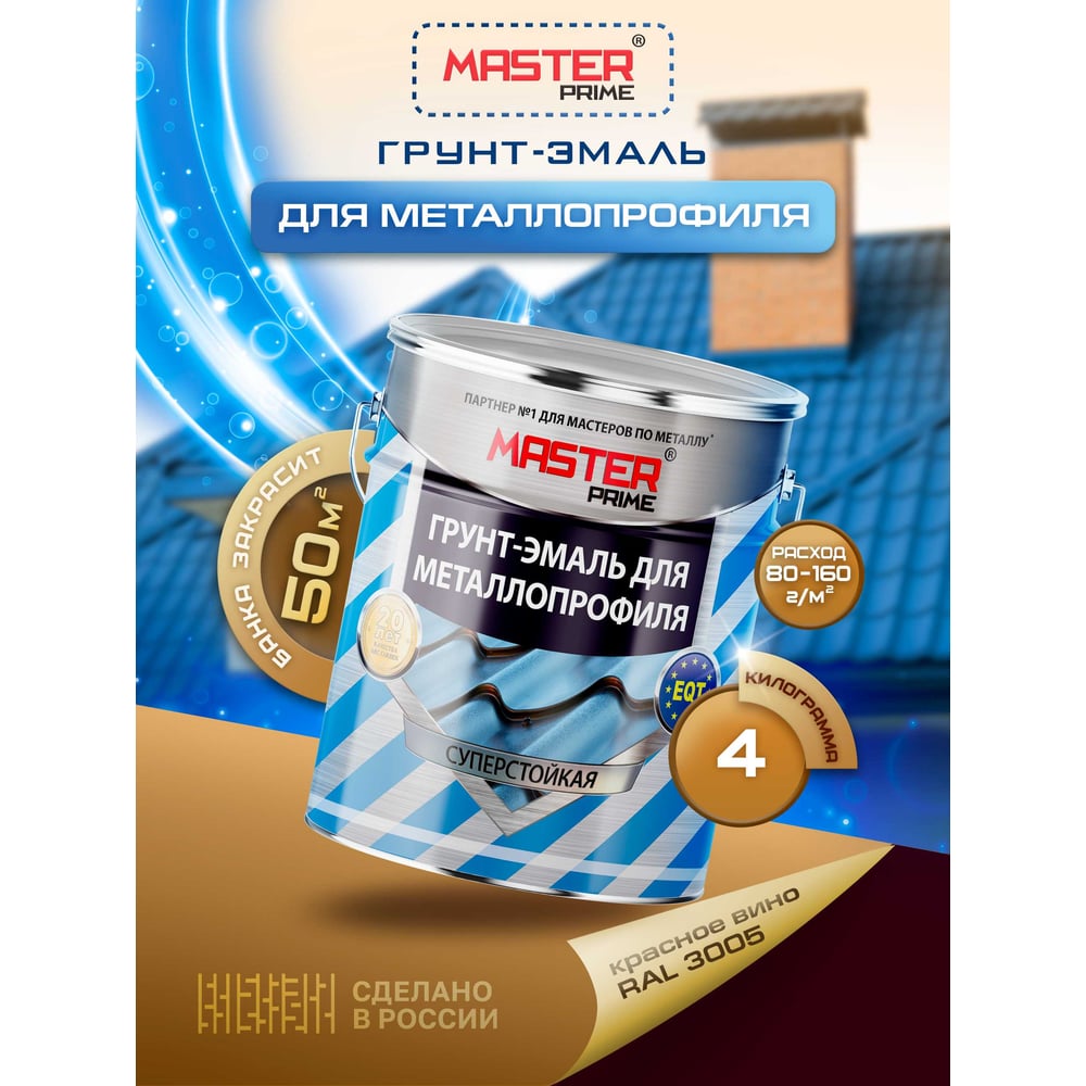 Грунт-эмаль для металлопрофиля MASTER PRIME RAL 3005 красное вино, 4 кг 4300006942