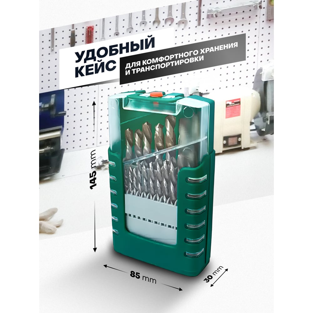 Набор сверел по металлу HSS 21 предмет, в пластиковом футляре Rockforce RF-924U21S(49384)
