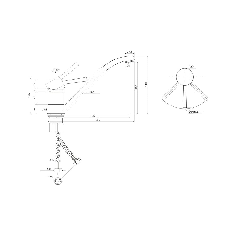 | Подводка в комплекте | гибкая |
