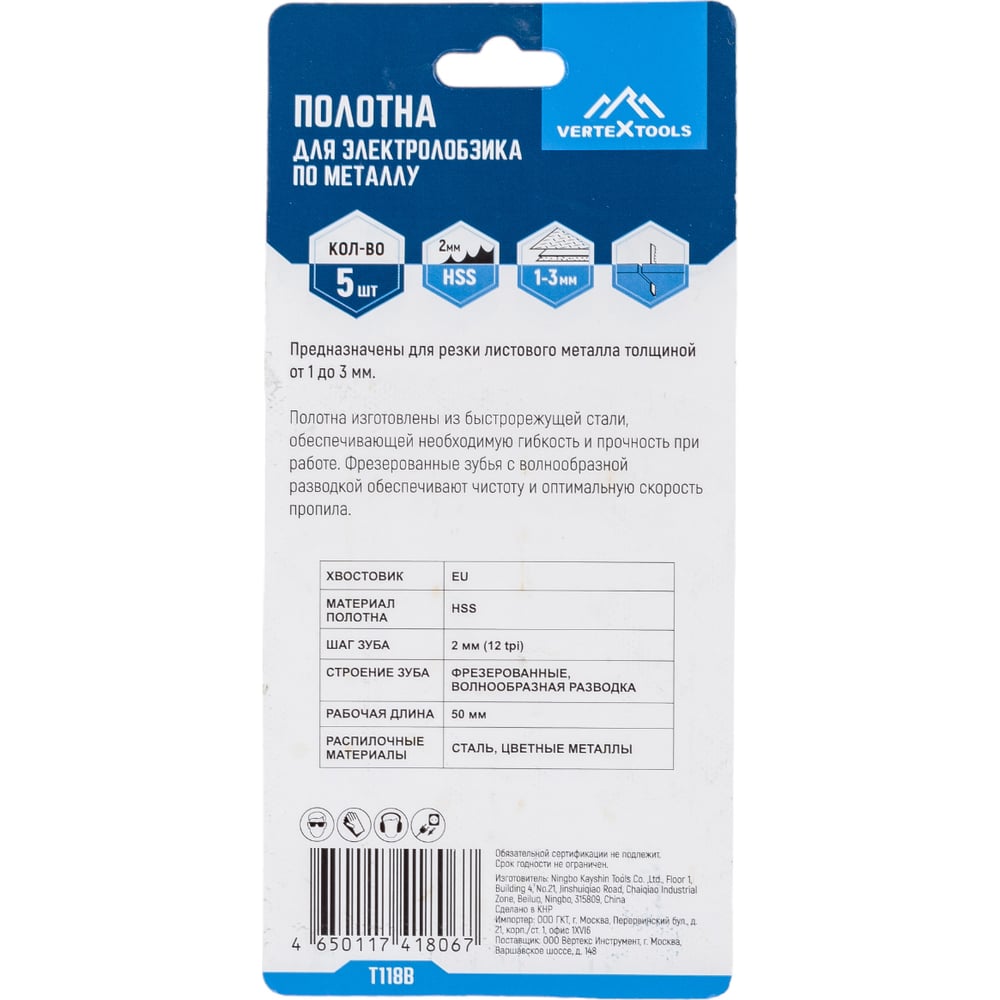 Полотно 5 шт для электролобзика vertextools T118B