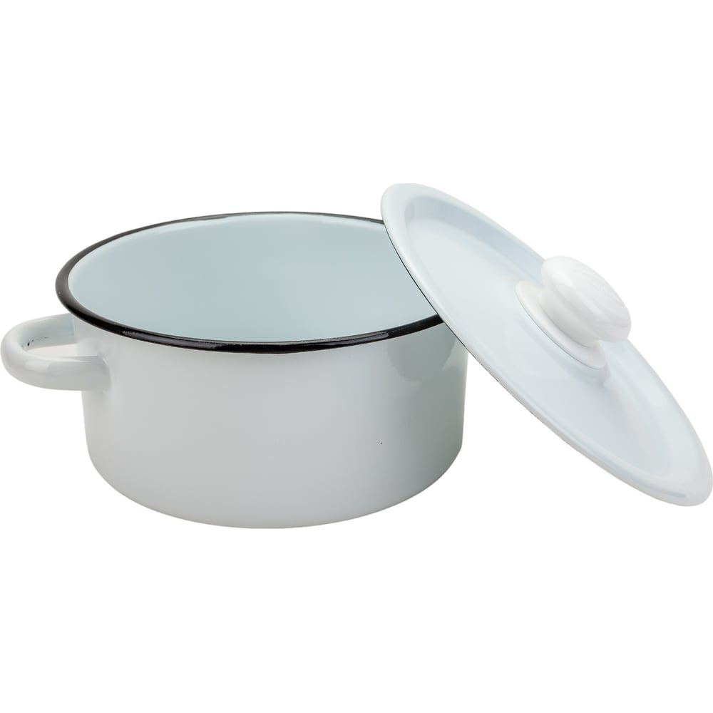 Эмалированная кастрюля Сибирские товары цилиндрическая, 2.0 л, светлая, с кнопкой ХП4565
