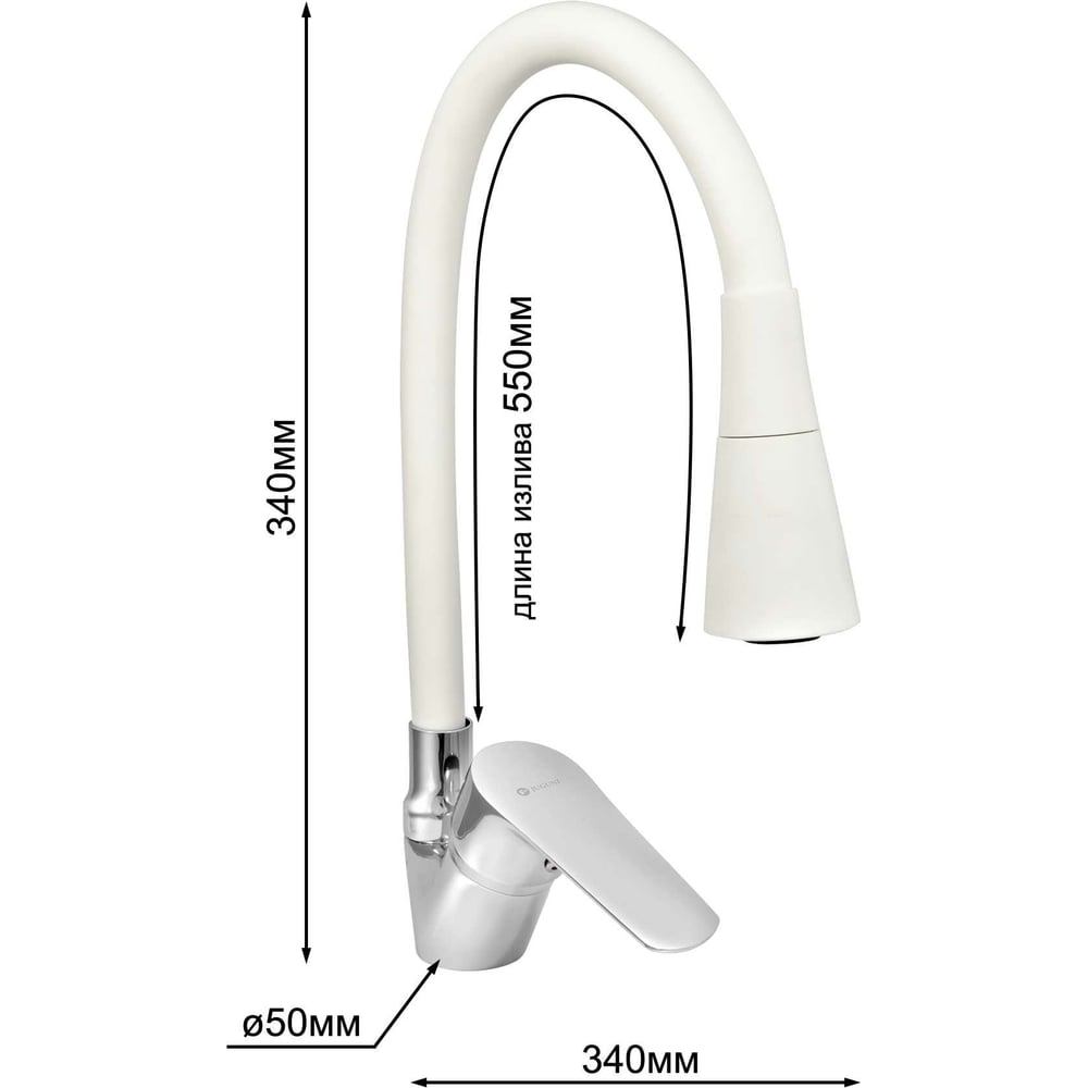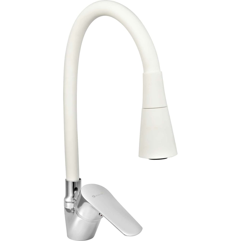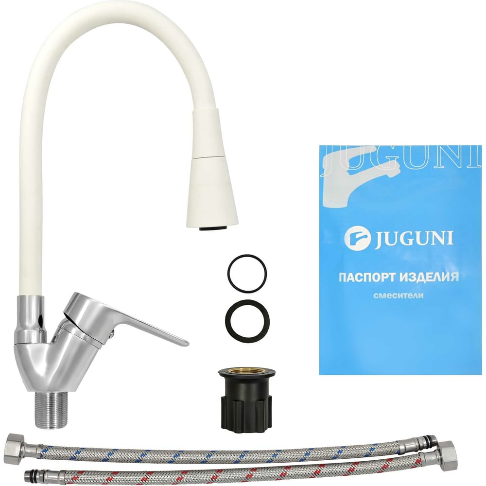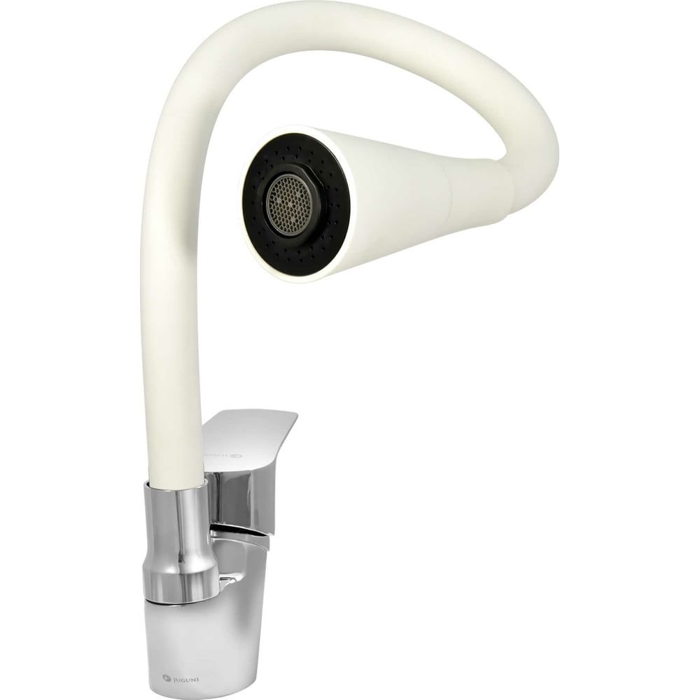 Смеситель для мойки Juguni одноручный, с гибким изливом, 2 режима (белый), гайка 0402.147