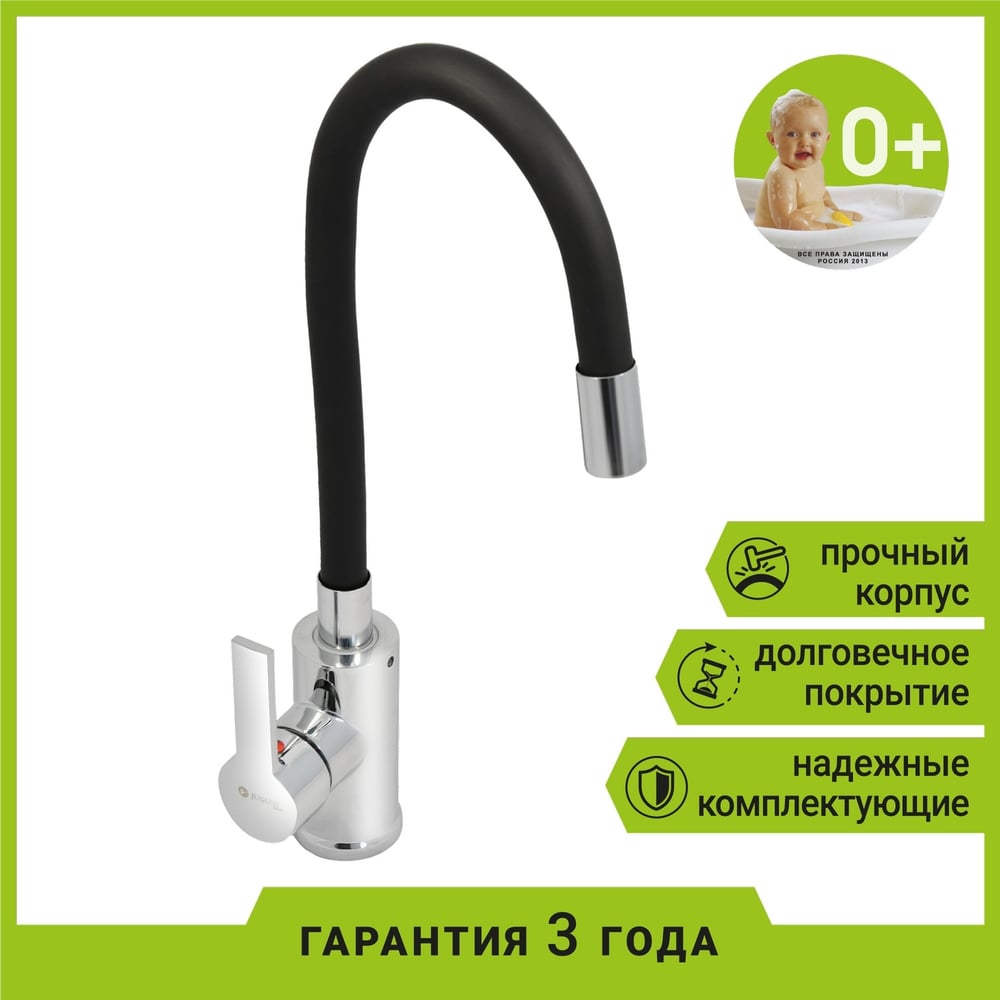 Смеситель для мойки Juguni с цветным изливом "Luxe" (черный) 0402.486