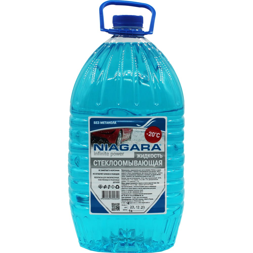 Жидкость омывания стекол NIAGARA 4 л, незамерзайка до -20, без метанола 001017007008