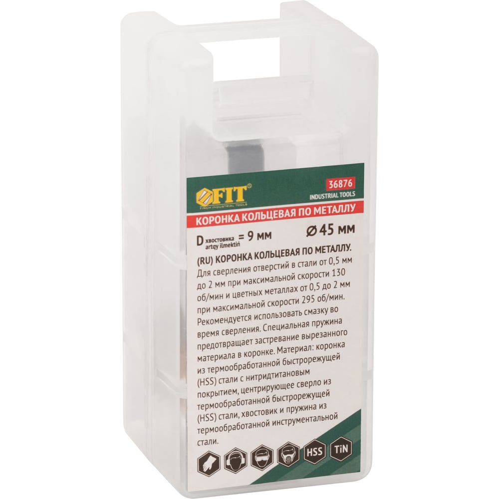 Коронка кольцевая по металлу 45 мм, HSS сталь, титановое покрытие FIT 36876