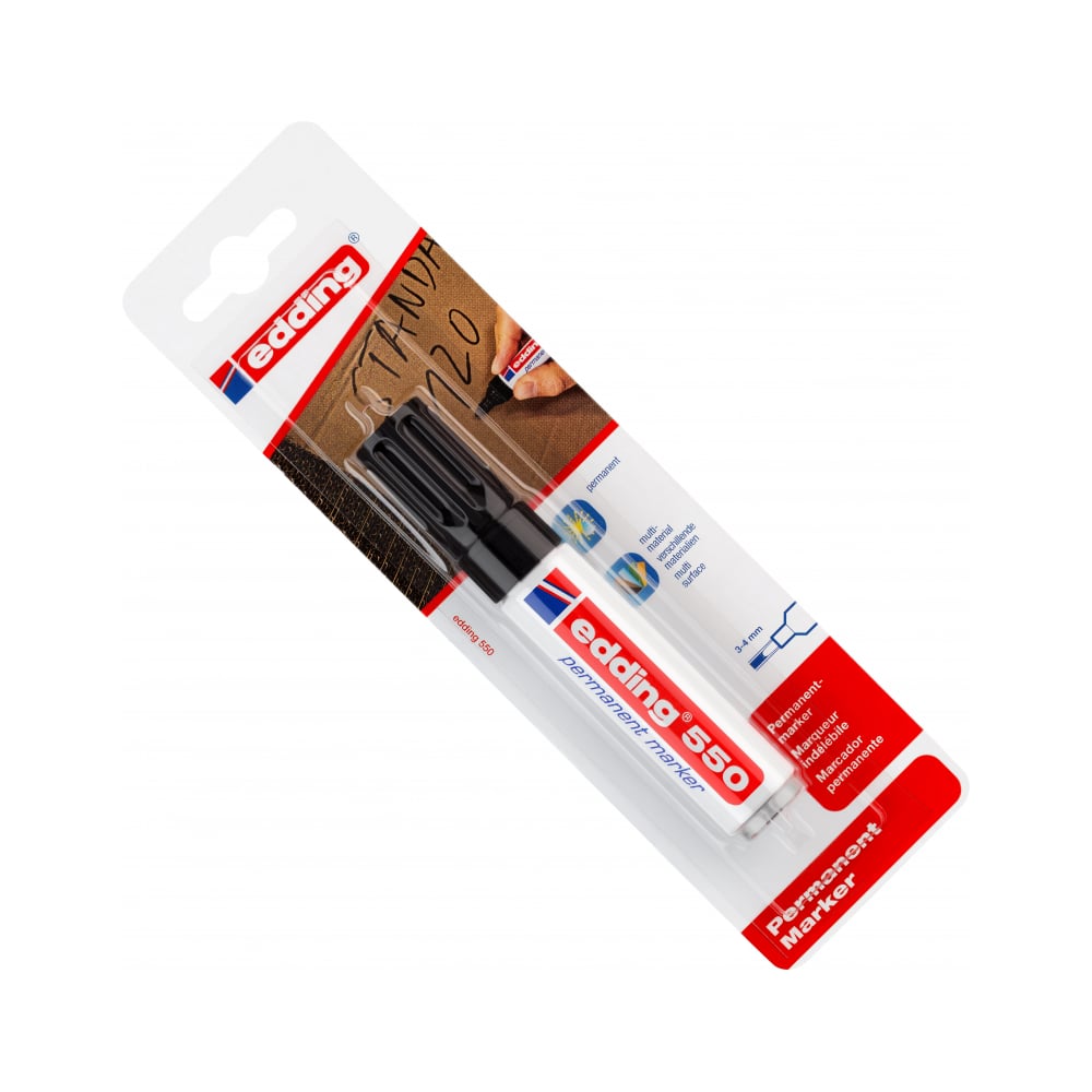 Перманентный маркер Edding 550/1 черный 3-4 мм круглый наконечник, блистер 1183325