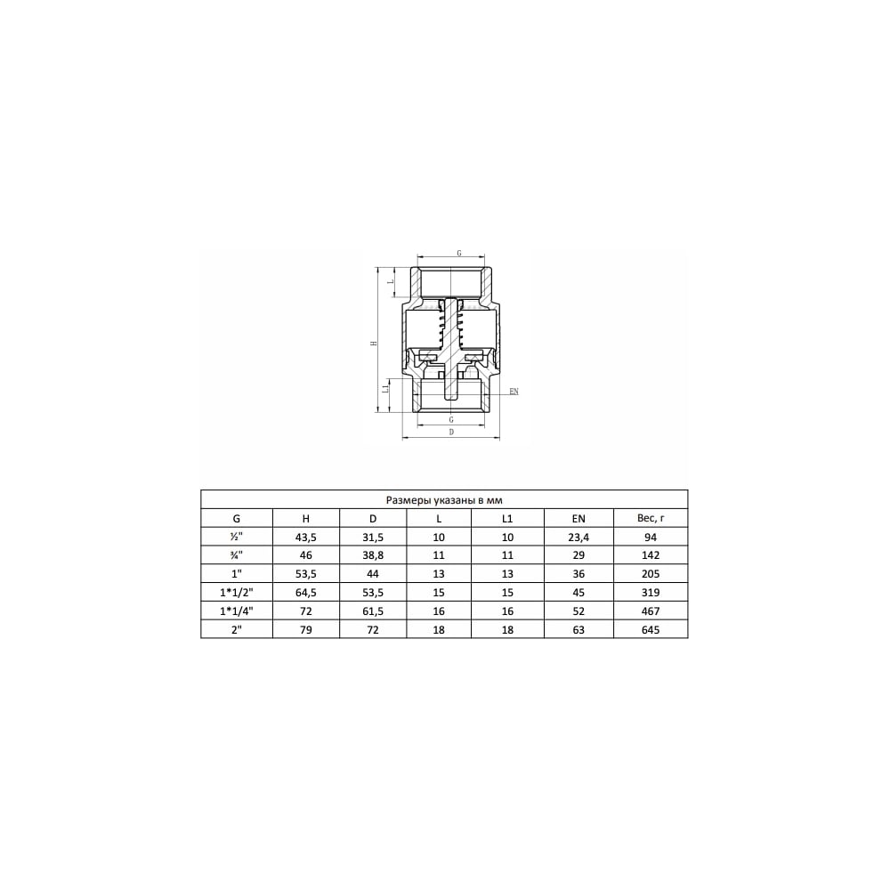 Обратный пружинный клапан AquaHit Ду25 ВН/ВН с металлическим затвором CV.720.06