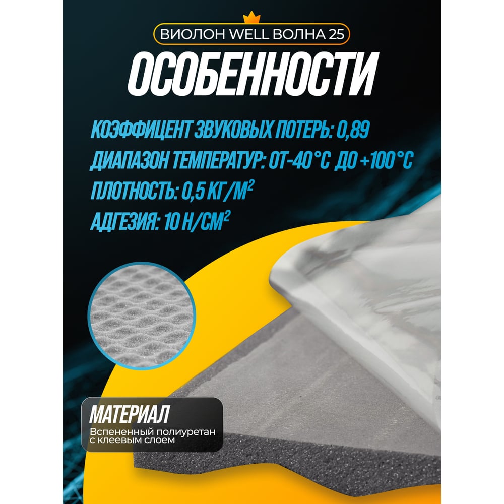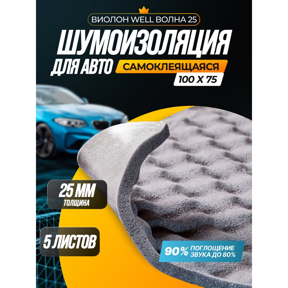 Материал для шумоизоляции SGM Виолон Well Wave 25 ( Виолон ВЭЛ Волна 25), акустический поролон самоклеящийся 5 листов SGM.WELL.25.W.5.L