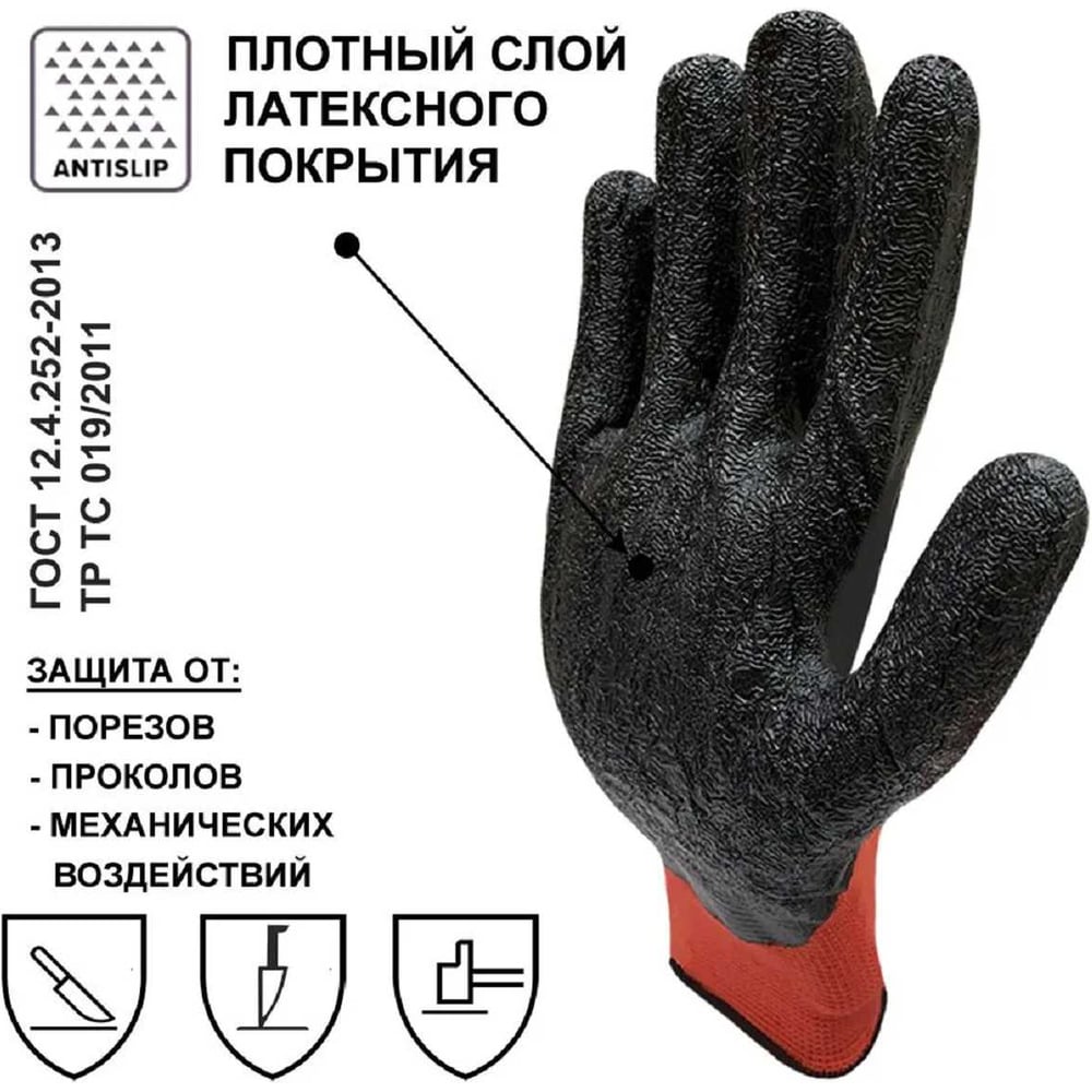Рабочие перчатки Master-Pro® ТОРРОН нейлоновые с рельефным латексным покрытием 1 пара 3513-NLA-1