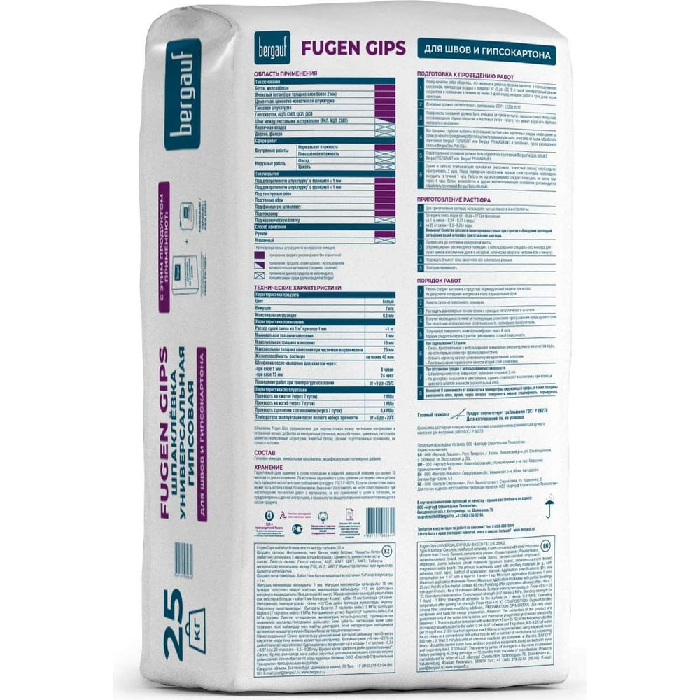 Шпаклёвка Bergauf Fugen Gips универсальная на гипсовой основе, 25 кг 07463
