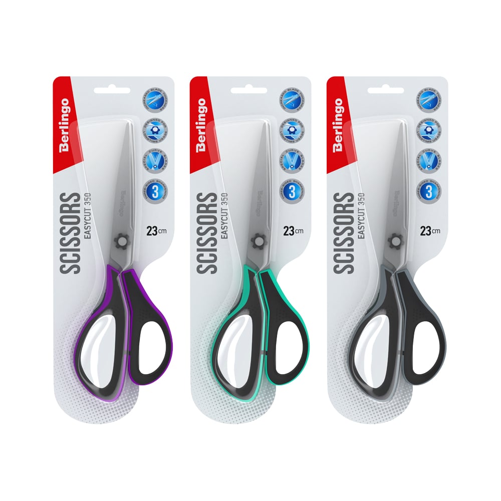 Ножницы Berlingo Easycut 350 23 см, ассорти, эргономичные ручки, мягкие вставки, европодвес DNn_23035