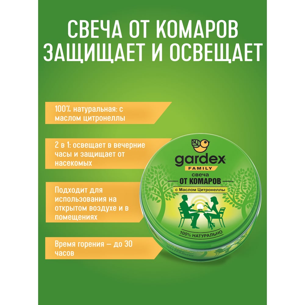 Репеллентная свеча от комаров Gardex Family 0144 0156