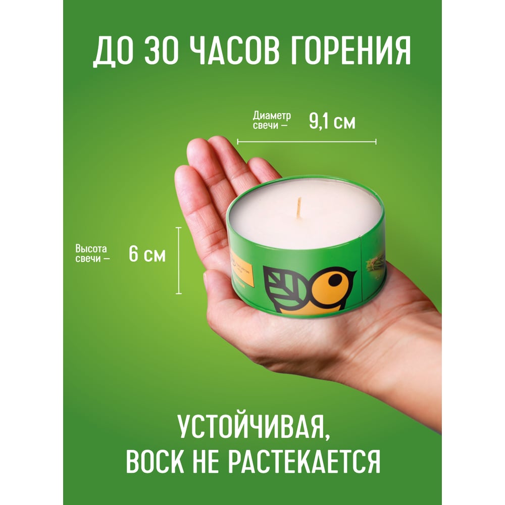 | Состав | цитронелловое масло (3%), парафиновый воск |