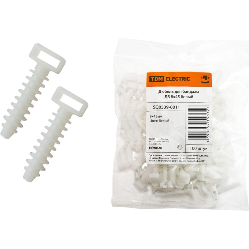 Дюбель для бандажа TDM ELECTRIC ДБ 8х45 белый, 100 шт. SQ0539-0011