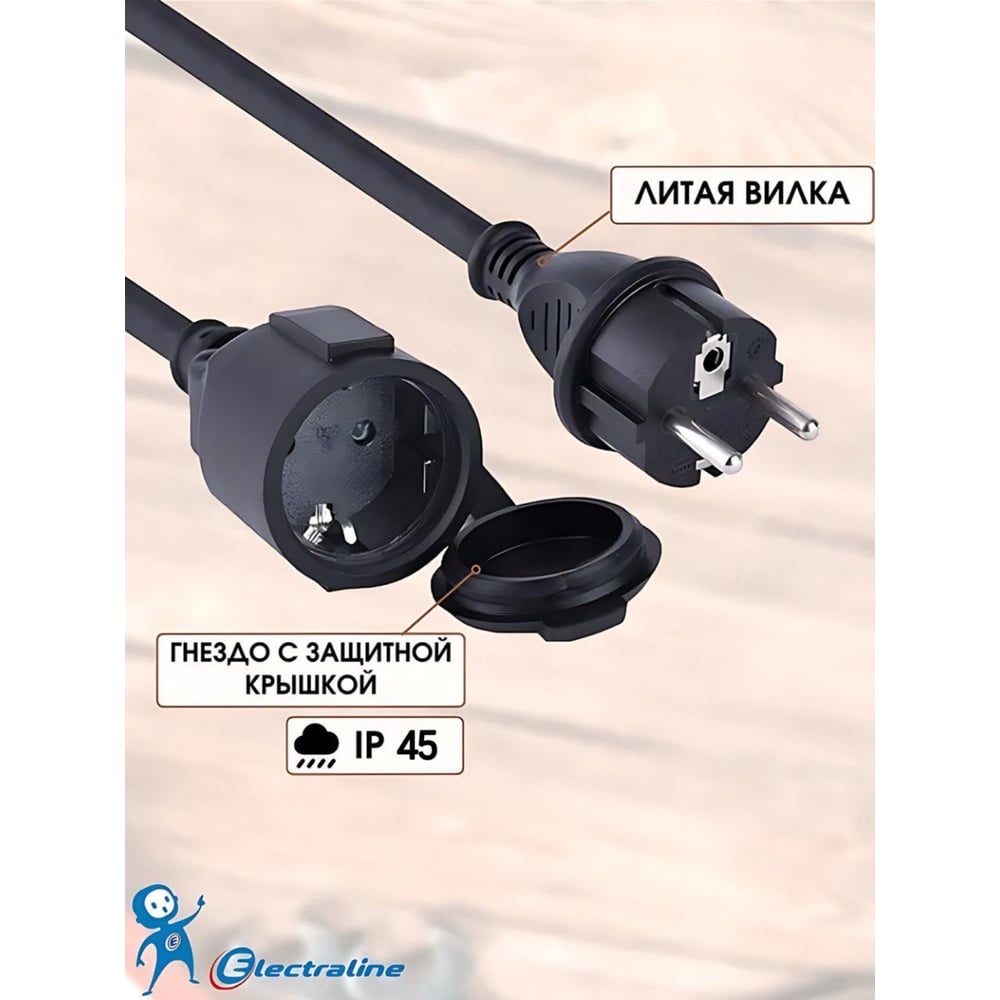 Удлинитель-шнур 1 розетка, с заземлением, с защитой от детей ip 45, 20м Electraline 01661