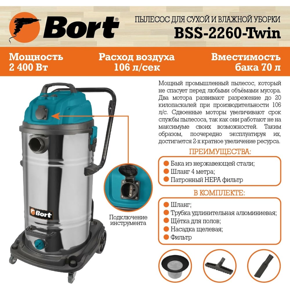 Пылесос для сухой и влажной уборки BORT BSS-2260-Twin 91272522