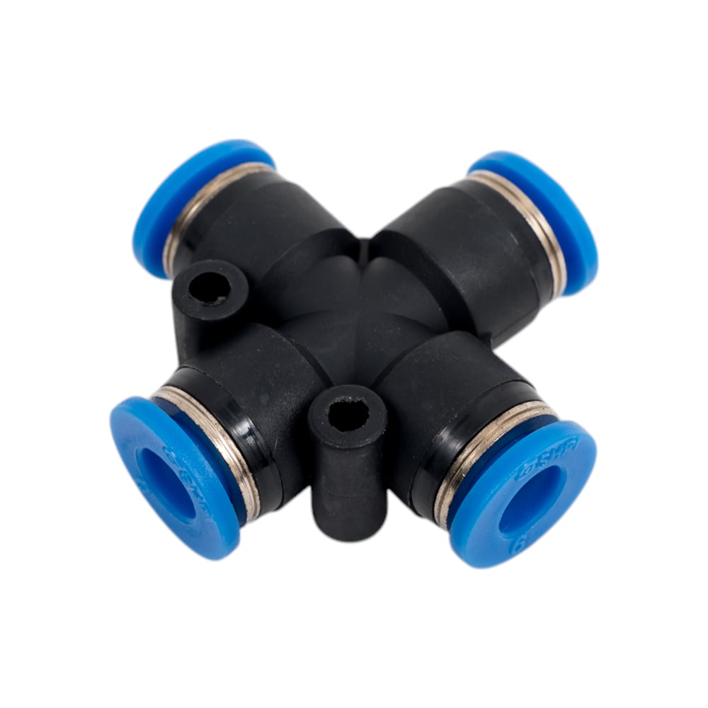 Цанговый крестообразный фитинг для соединения трубок диаметром 6 мм SHPI PZA 06