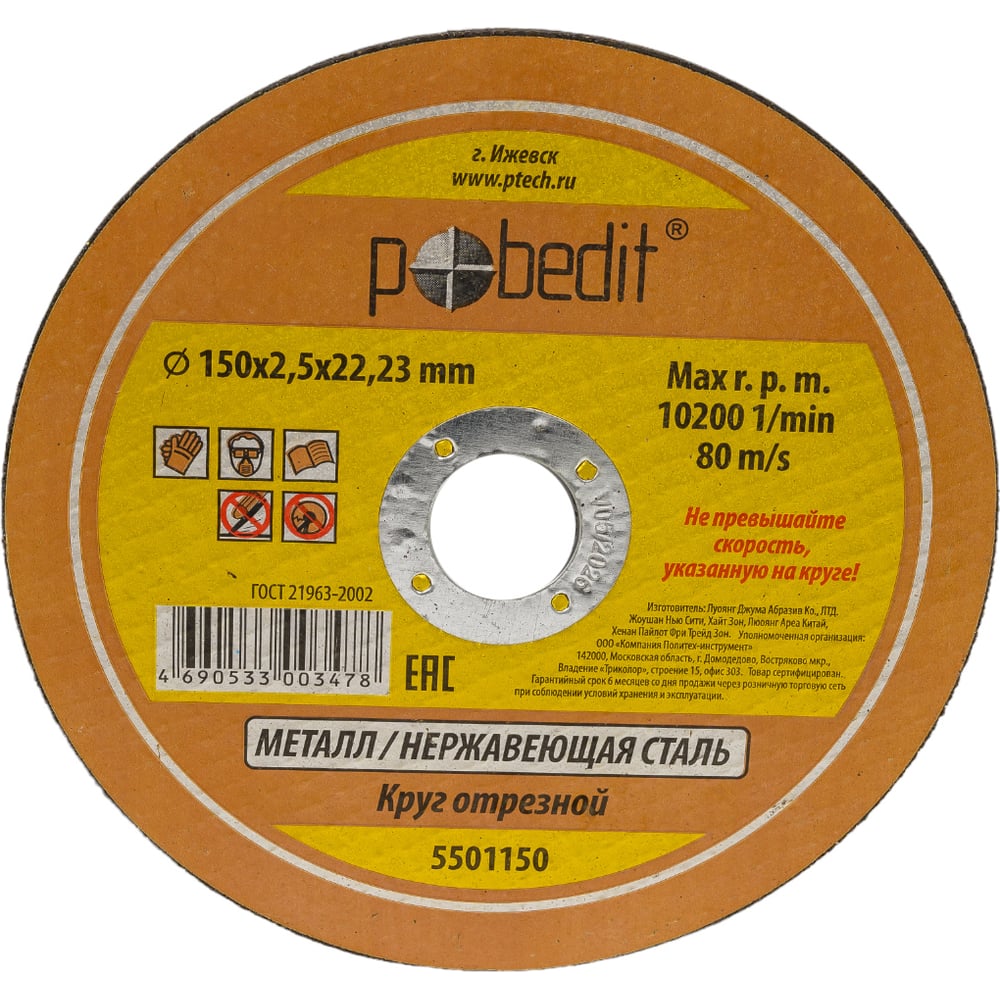 Отрезной круг по металлу Pobedit 5501150