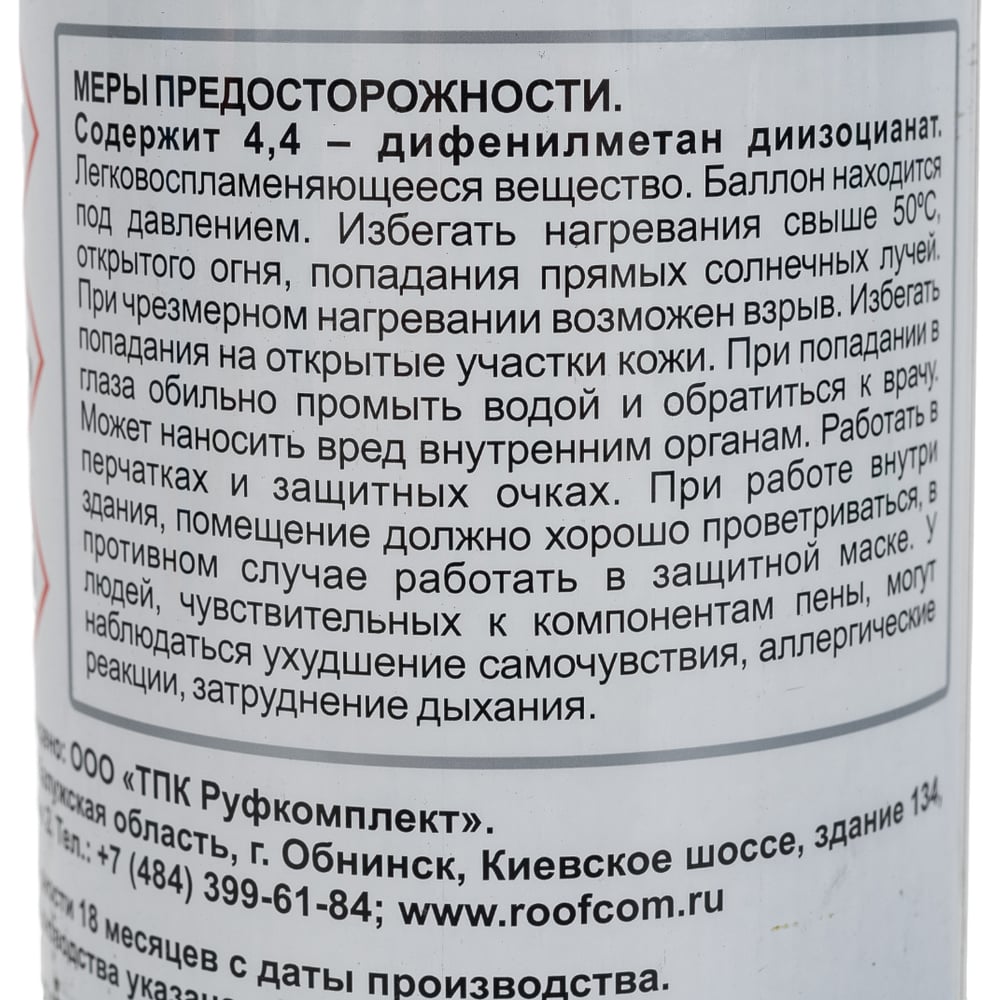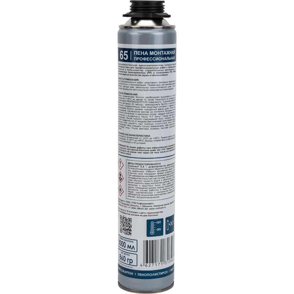 | Объем пены в баллоне (выход) | 65 л |