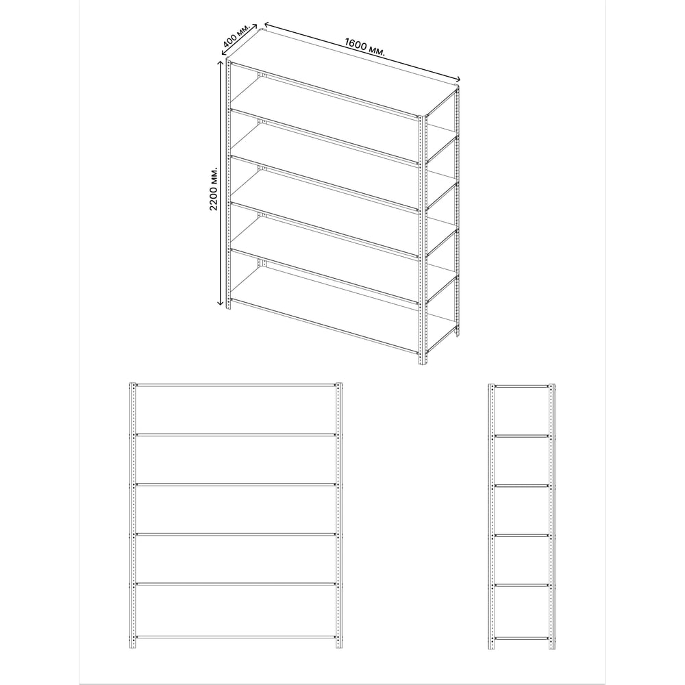 Габариты без упаковки 2200x1600x400 мм Высота 2200 мм Материал сталь Покрытие порошковое Ширина 1600 мм Цвет серый, зеленый Вид стеллаж Класс товара Бытовой Установка напольный Глубина 400 мм Конструкция стационарный Сборные нет Max нагрузка на полку 100 кг Кол-во полок/ярусов 6 шт Шаг регулирования высоты полки 25 мм Вес стеллажа 22.5 кг Безболтовые нет