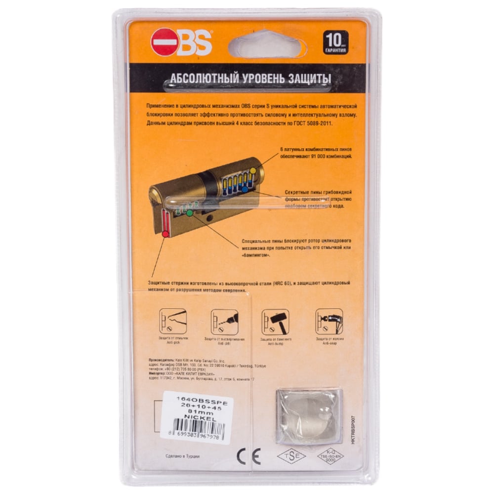 Цилиндровый механизм с вертушкой KALE KILIT 164 OBS SCE/81, 26x10x45 мм, никель, 5 кл. 45233