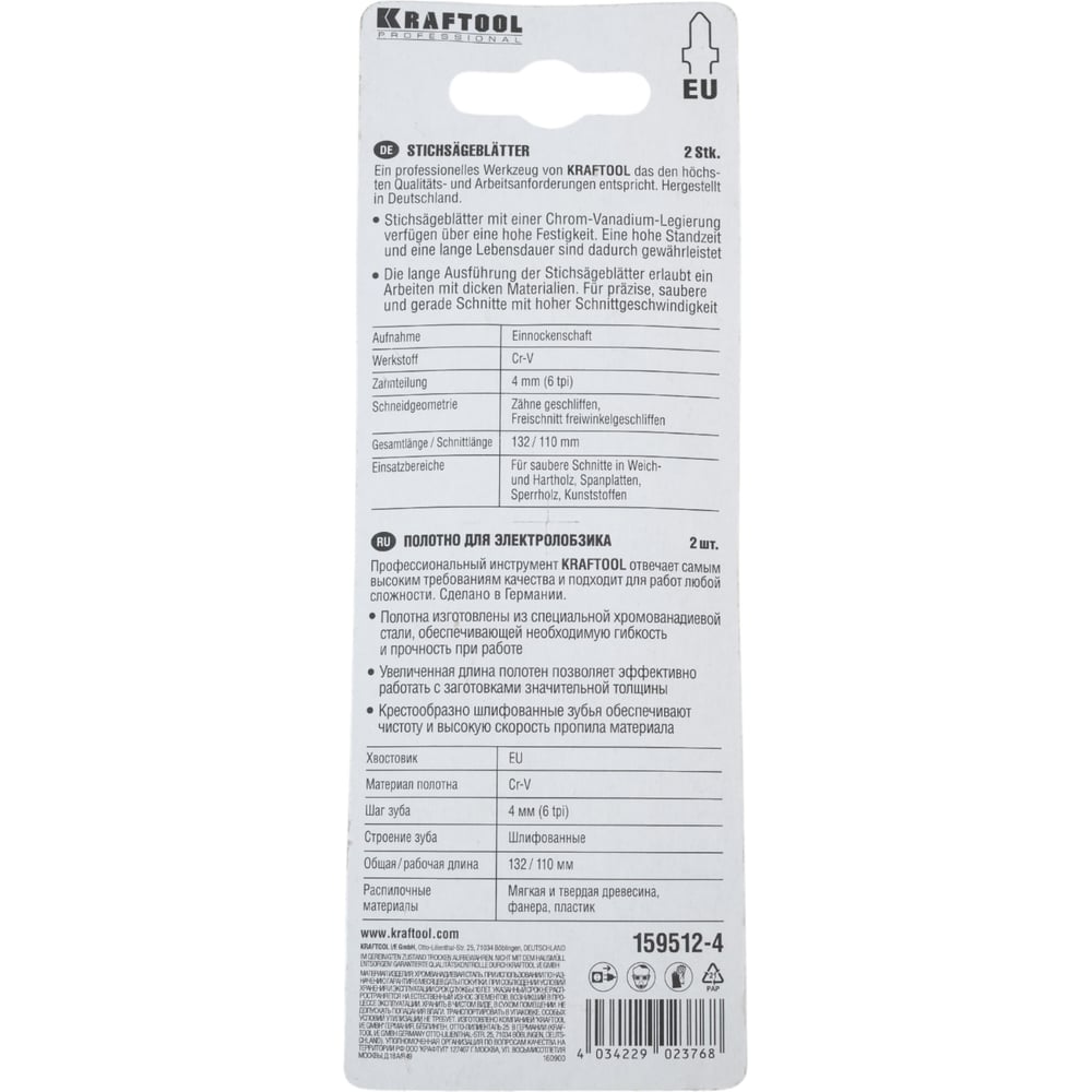 Полотно 2 шт. (110 мм; шаг 4 мм) по дереву для электролобзика KRAFTOOL 159512-4