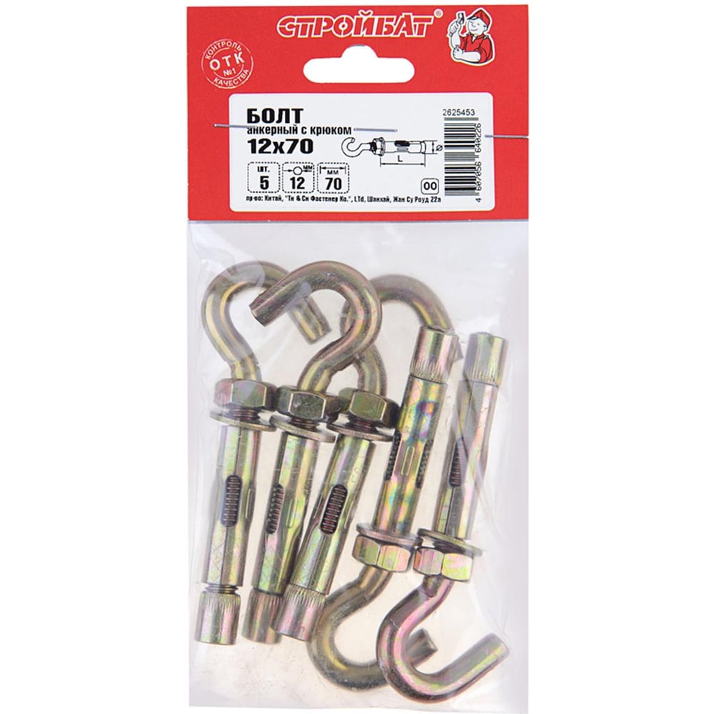 Анкерный болт с крюком Стройбат 12x70 цинк 5 шт 307980