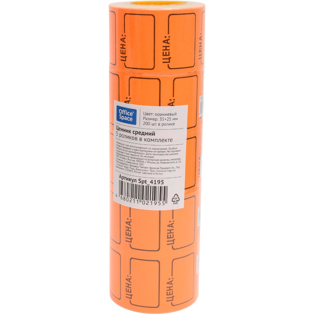 Средний ценник 5 шт в упаковке Office Space 35х25 мм, оранжевый, 200 шт./рулон Spt 4195