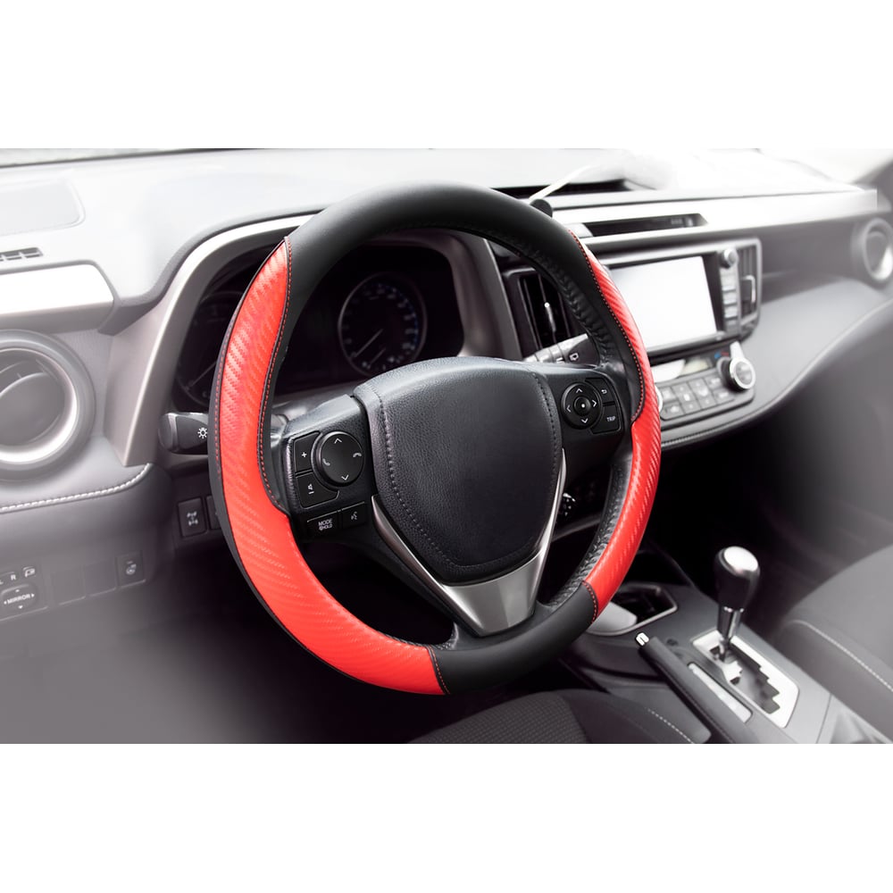 Оплетка KRAFT эко-кожа с карбоновыми вставками, размер M, 38 см, черно-красная KT 800345