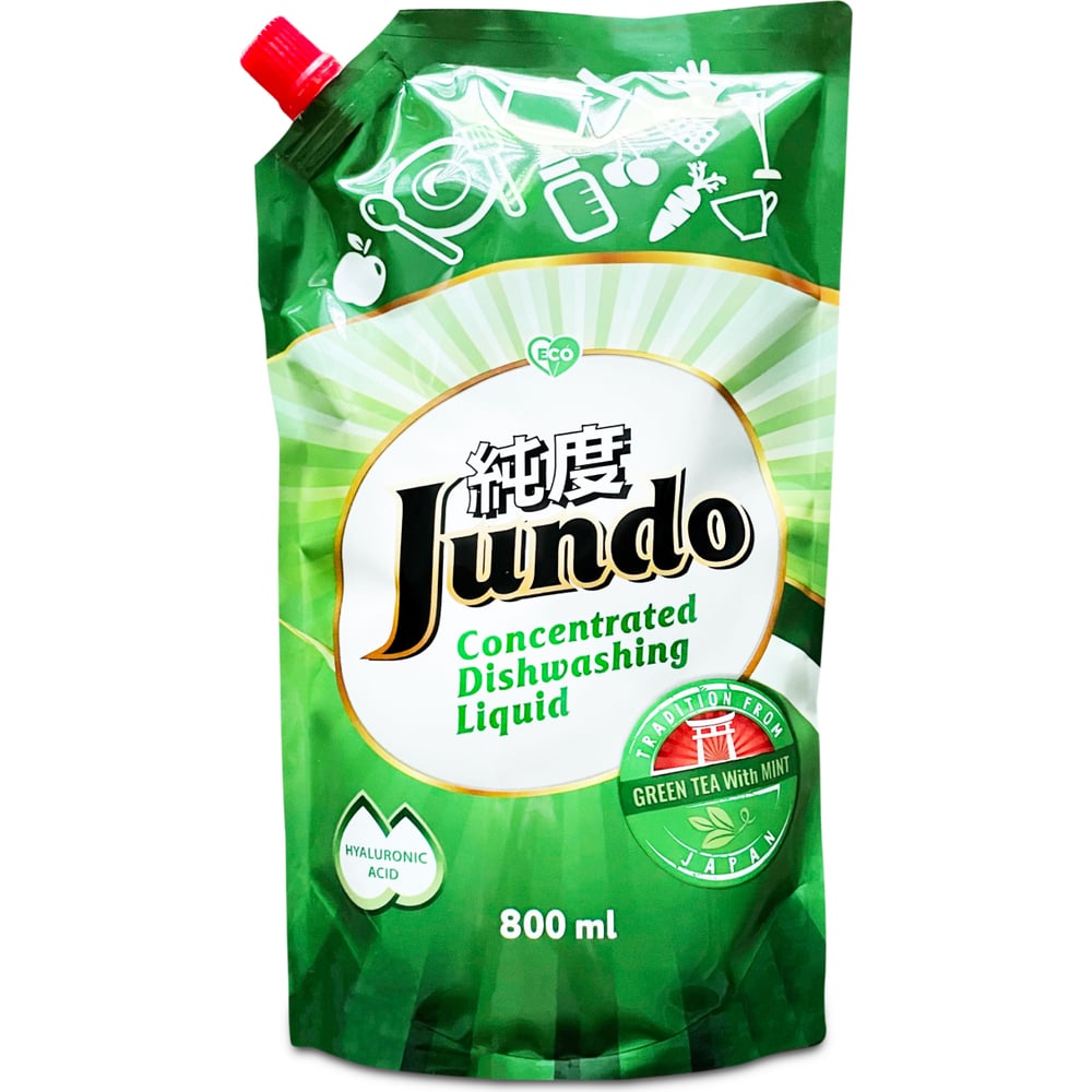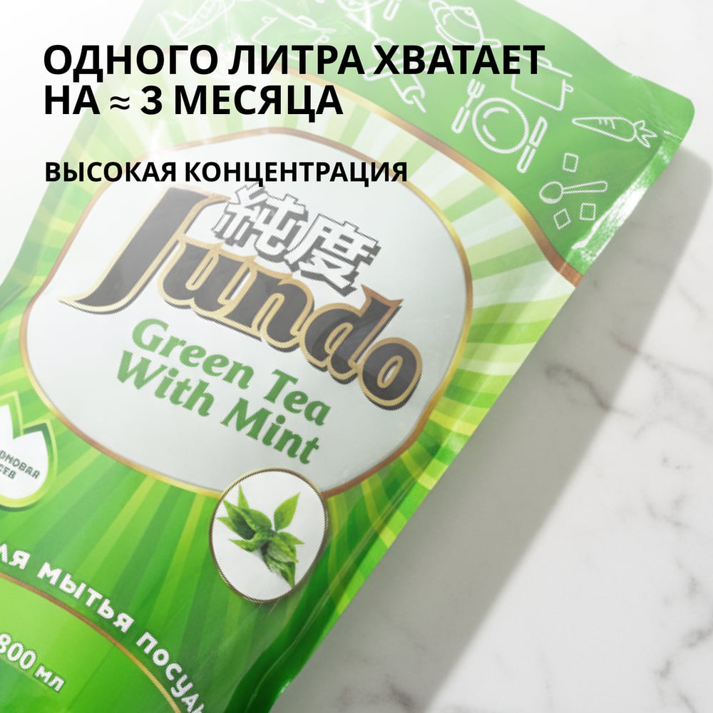 Гель для мытья посуды Jundo Премиум с ароматом зелёного чая с мятой, 0,8 л 4903720020036