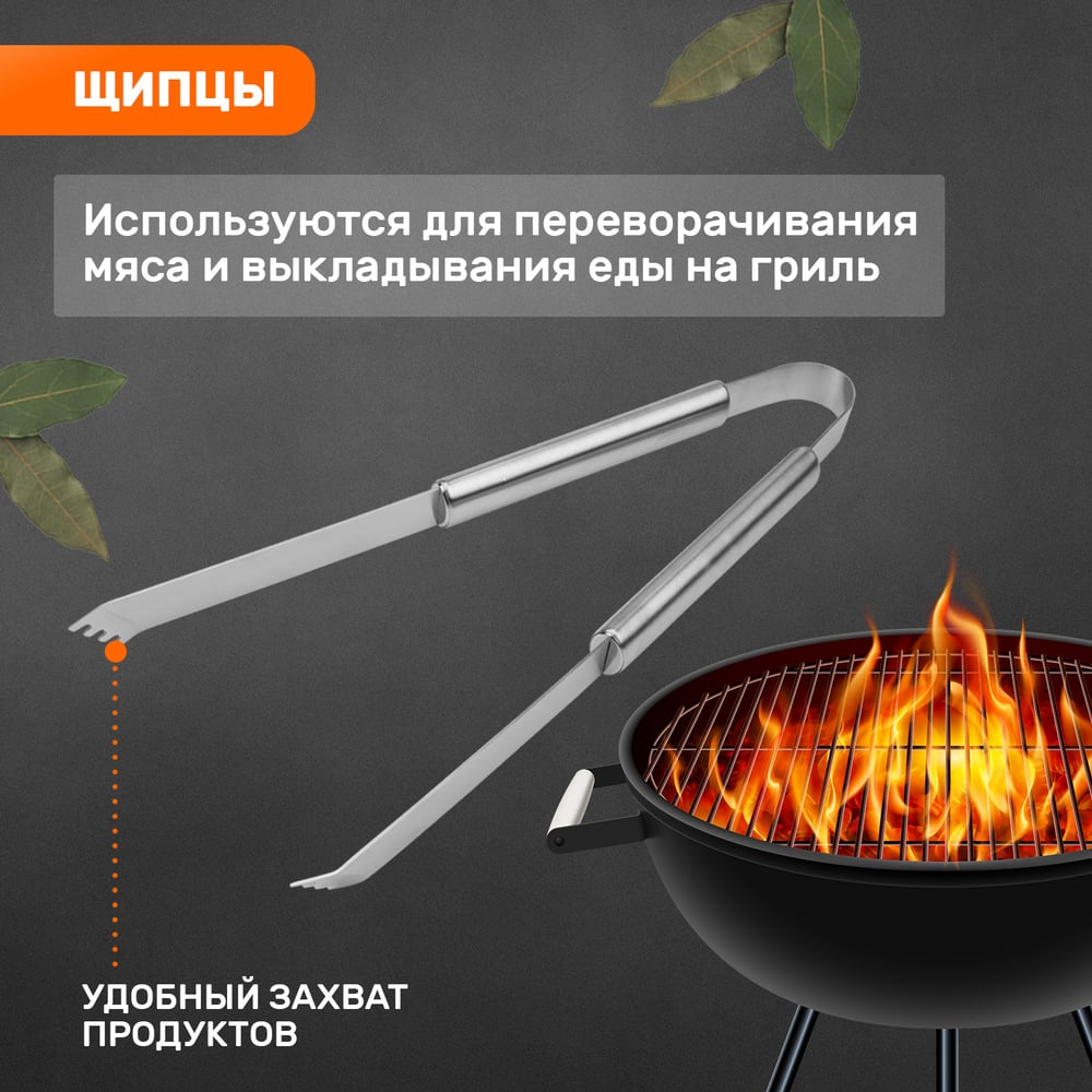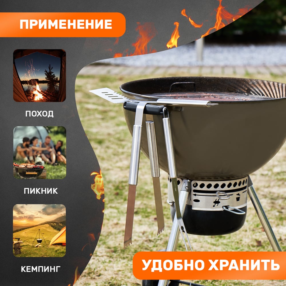 Набор: щипцы, вилка и лопатка для барбекю и гриля СОКОЛ Стандарт 62-0053
