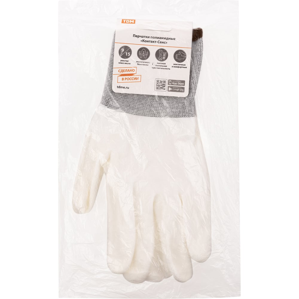 Полиамидные перчатки TDM ELECTRIC Контакт-Сенс, полиуретановое покрытие, 1 пара SQ1016-0312