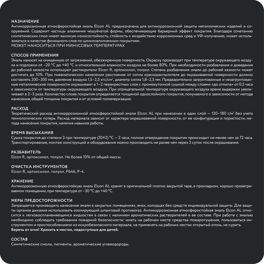 | Время полного высыхания | 72 ч |