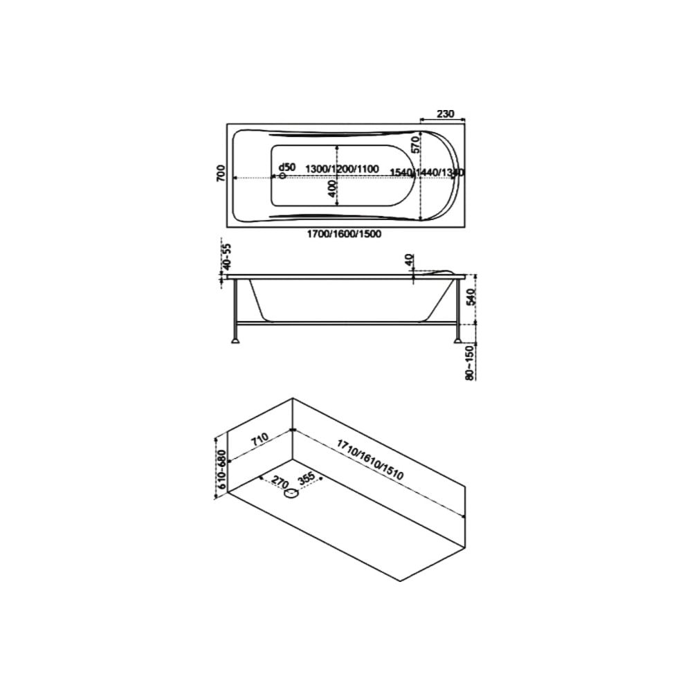 Ванна BAS Атланта 1700х700 каркас, комплект д/с В 00003