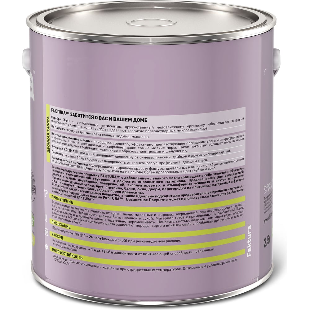 Защитно-декоративное покрытие для древесины FAKTURA с льняным маслом, ионами серебра, для вн/нар., сосна, 2,5 л 209269