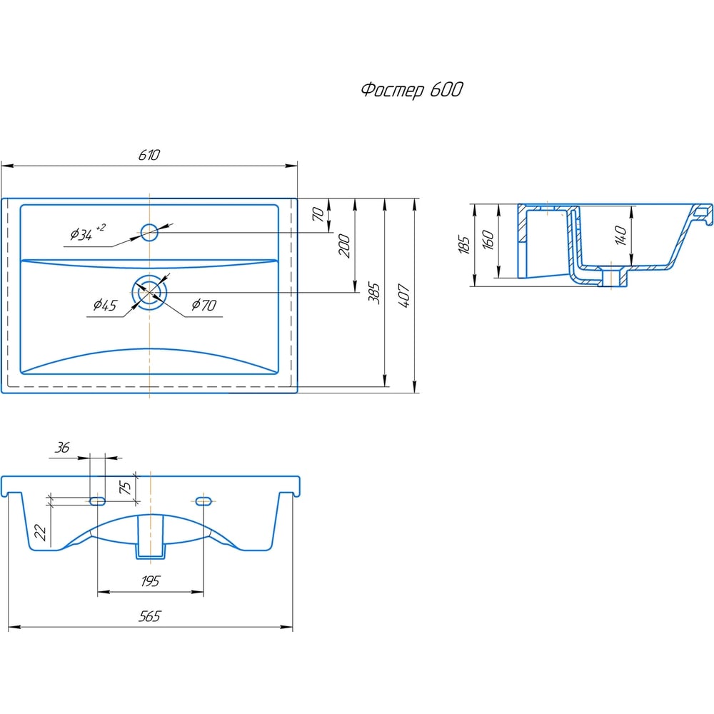 | Высота раковины | 185 мм |