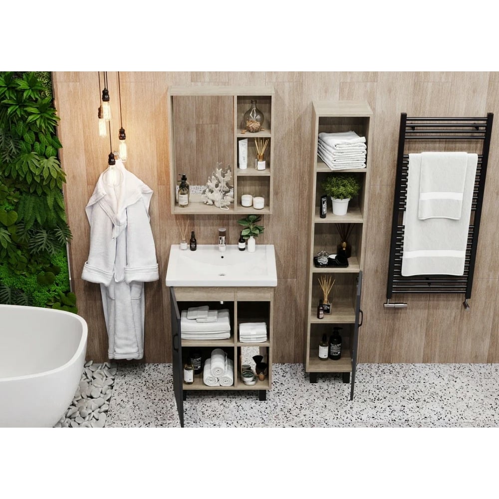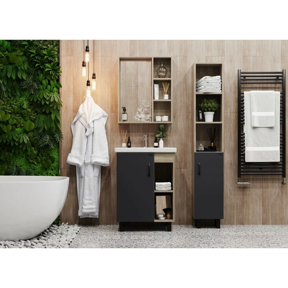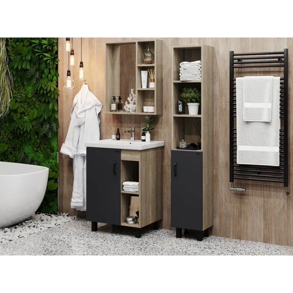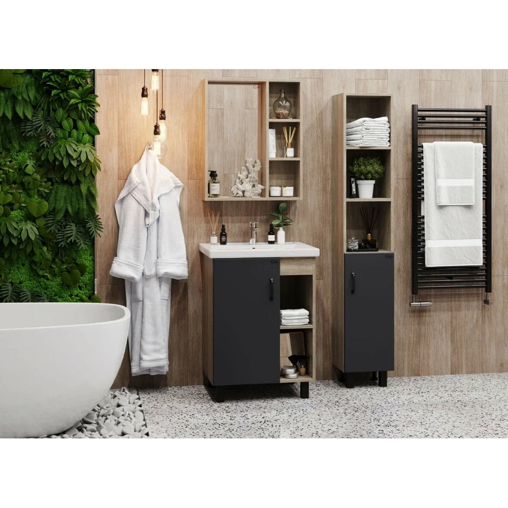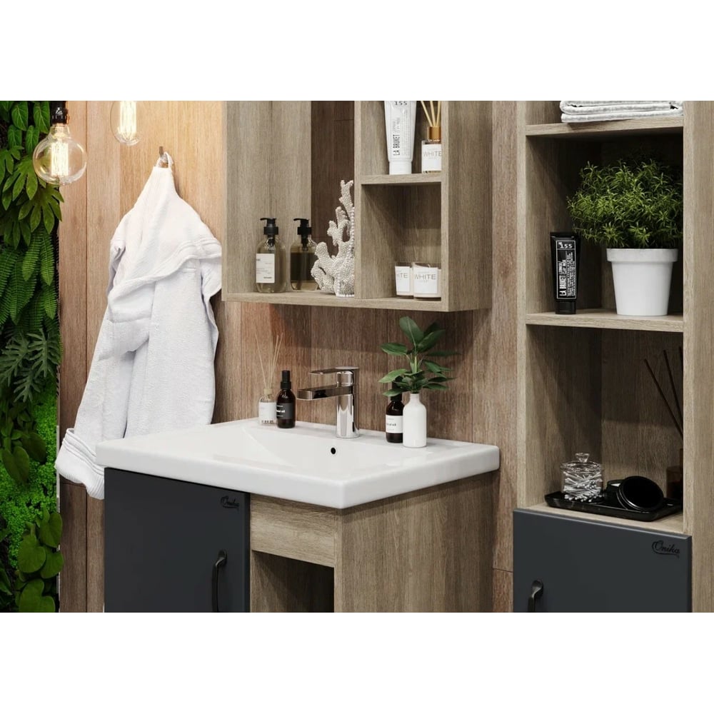 Тумба с раковиной Onika ТИМБЕР 60 напольная, серая мат./дуб сонома 106116