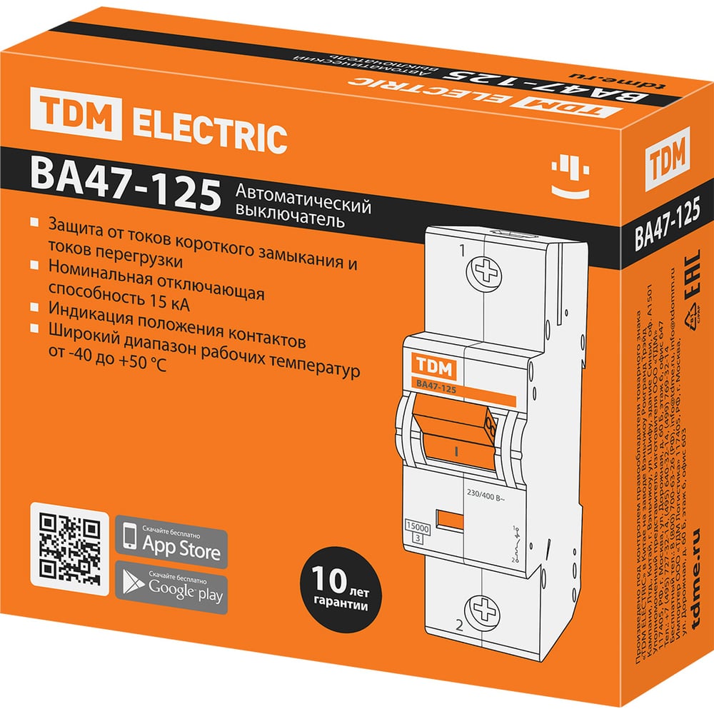 Автоматический выключатель TDM ELECTRIC ВА47-125 1Р 80А 15кА D SQ0208-0010