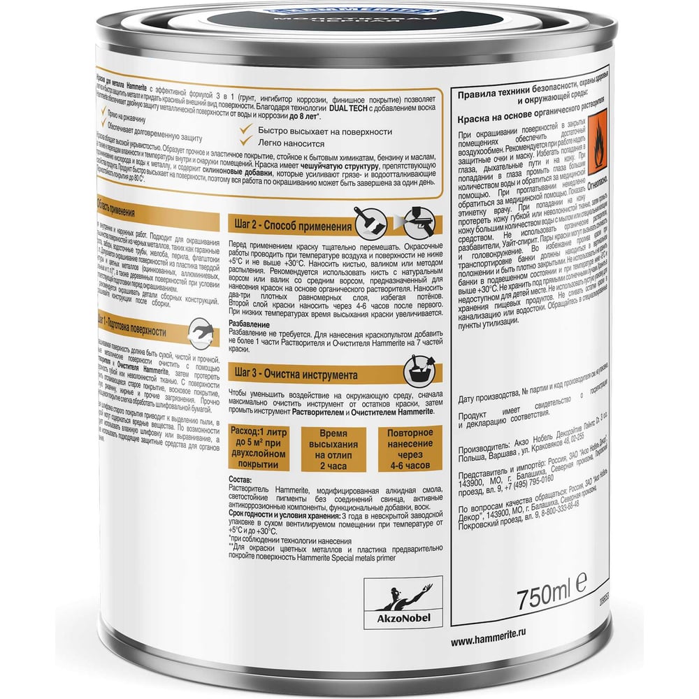 Гладкая эмаль по ржавчине Hammerite 5819991