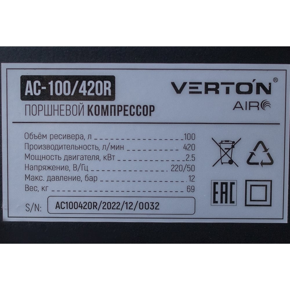 Компрессор VERTON Air AC-100/420R 01.5985.12197