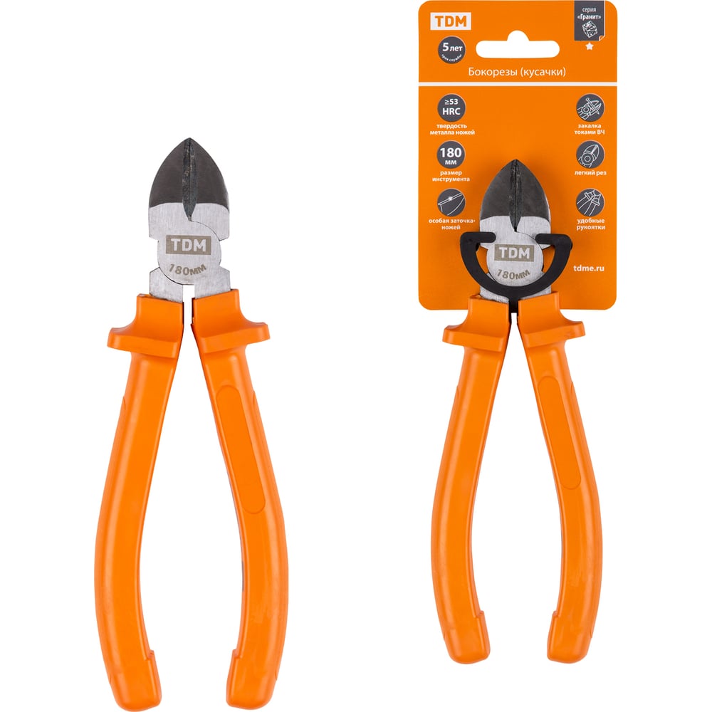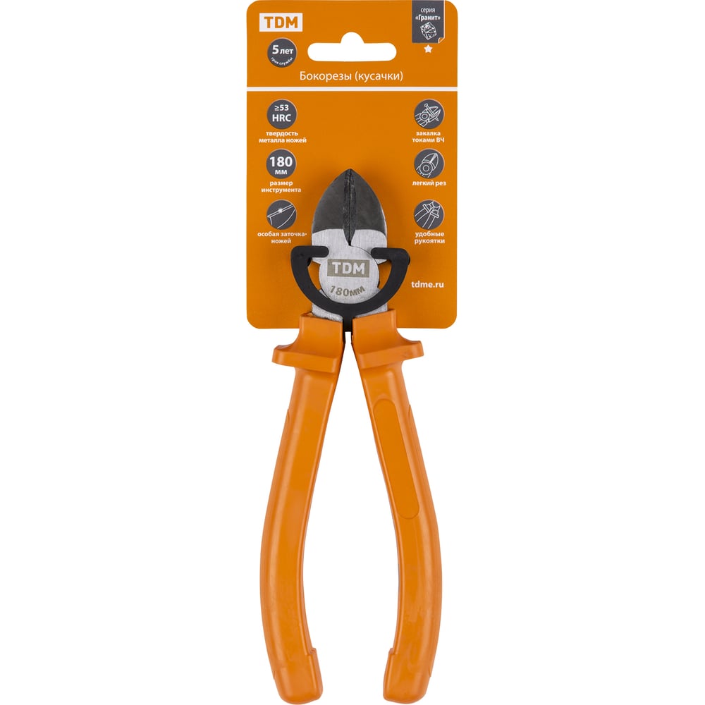 Бокорезы (кусачки для проводов) TDM ELECTRIC с пластиковыми рукоятками, углеродистая сталь, 180 мм, серия "Гранит" SQ1009-0302