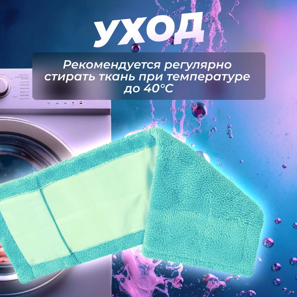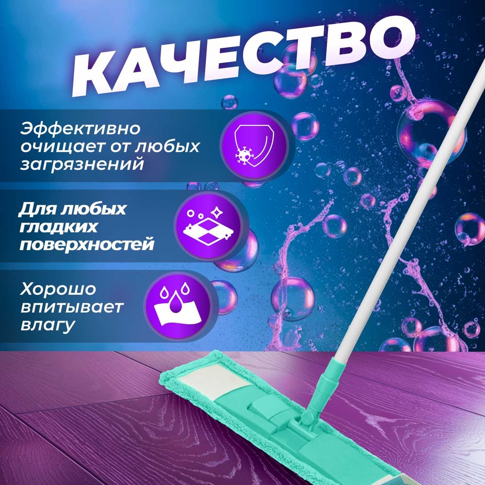 Габариты без упаковки 430х140 мм Цвет бирюзовый Форма плоская Назначение для пола Тип крепления карман Длина МОПа 430 мм Ширина МОПа 140 мм Материал насадки микрофибра Количество насадок в наборе 1 шт