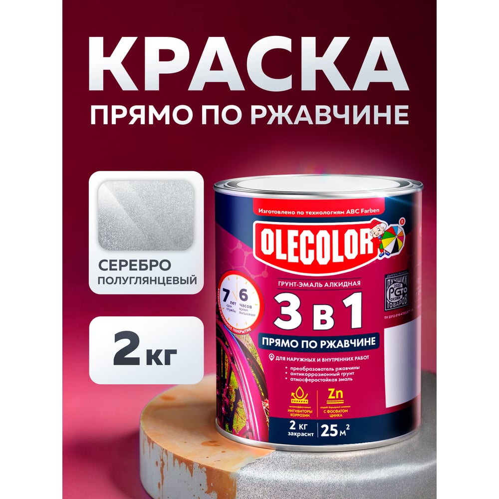 Грунт-эмаль по ржавчине Olecolor 3 в 1 серебро (2 кг) 4300008968